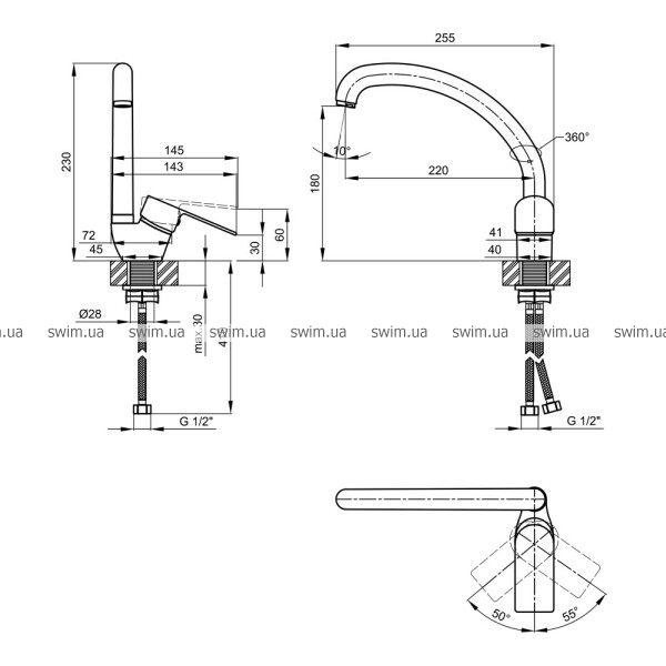 • Диаметр подключения 1/2"