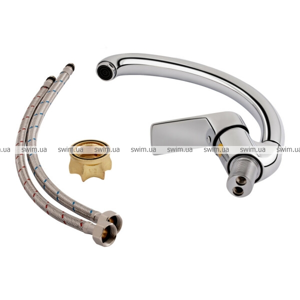• Комплектация Смеситель, гибкая подводка, крепежи.