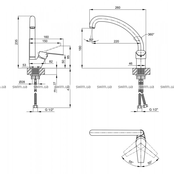 - Высота излива, мм 180