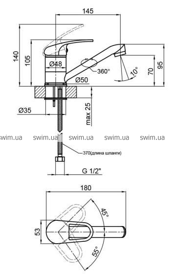 • Дополнительные характеристики     Длина гибкой подводки - 370 мм.