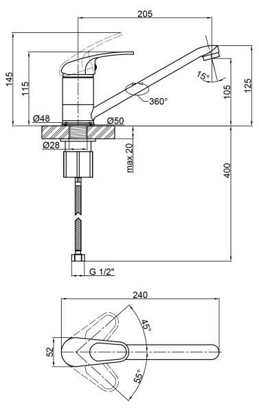 Смеситель для кухонной мойки Lidz CRM Cosmos 80 003 00 250 мм