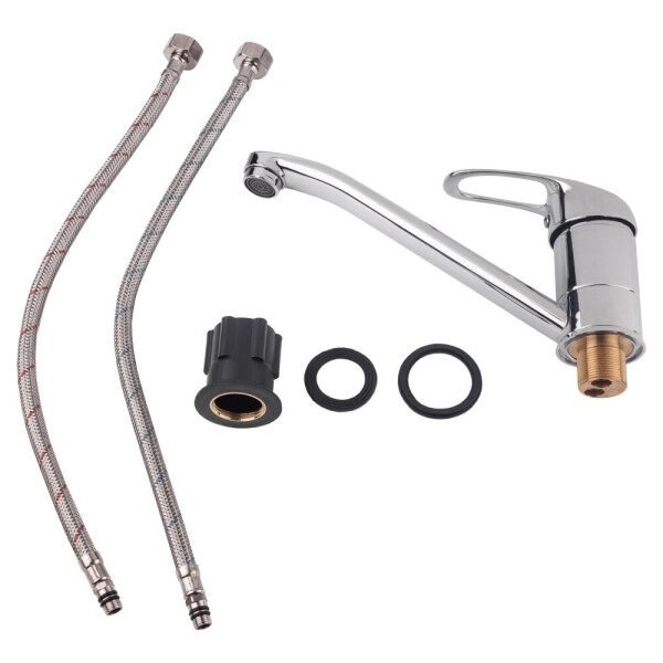 - Комплектация Смеситель, гибкая подводка, крепежи.