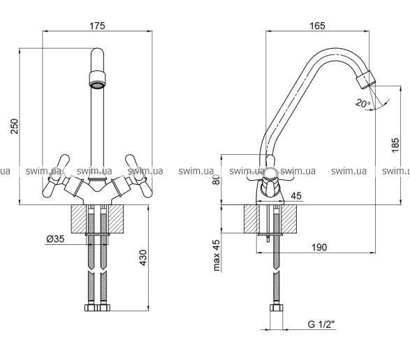 - Комплектация Смеситель, гибкая подводка, крепежи.