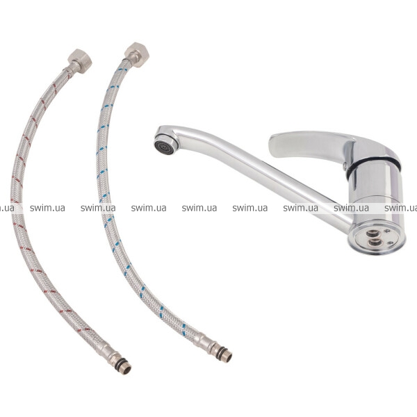 - Комплектация Смеситель, гибкая подводка, крепежи.