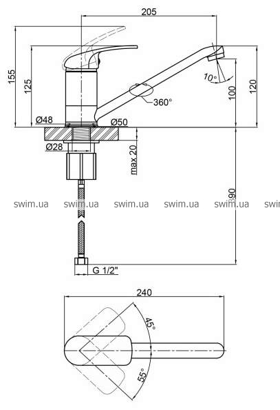 Смеситель для кухонной мойки Lidz CRM Mars 81 003 00 250 мм