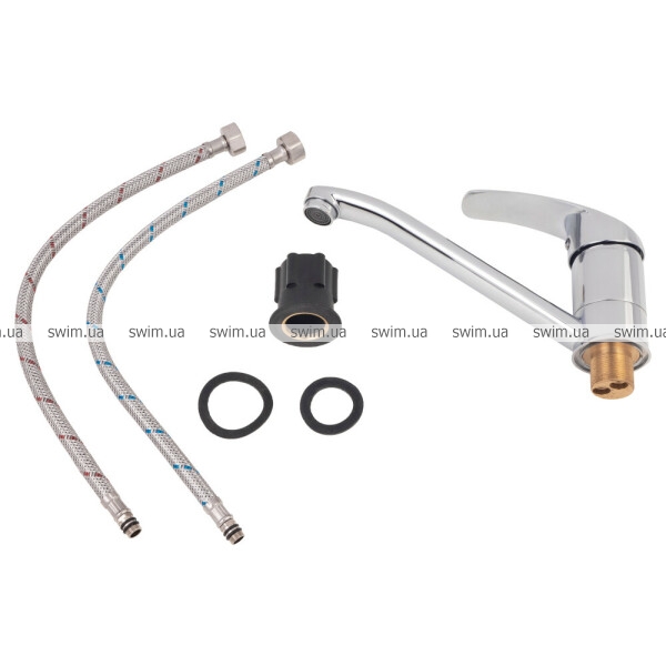 - Комплектация Смеситель, гибкая подводка, крепежи.