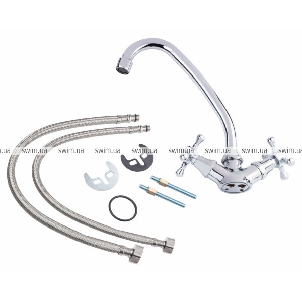 - Комплектация Смеситель, гибкая подводка, крепежи.