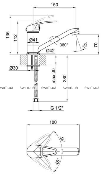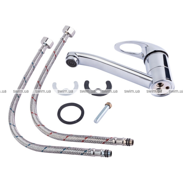 - Комплектация Смеситель, гибкая подводка, крепежи.