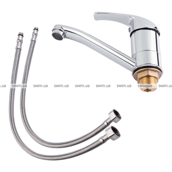 - Комплектация Смеситель, гибкая подводка, крепежи.