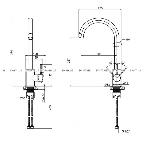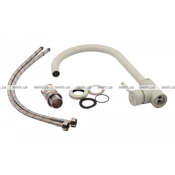 - Комплектация Смеситель, гибкая подводка, крепежи.