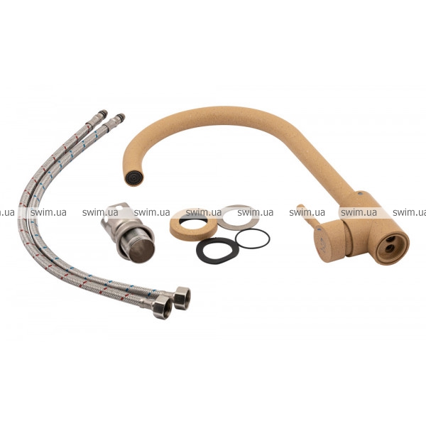 - Комплектация Смеситель, гибкая подводка, крепежи.