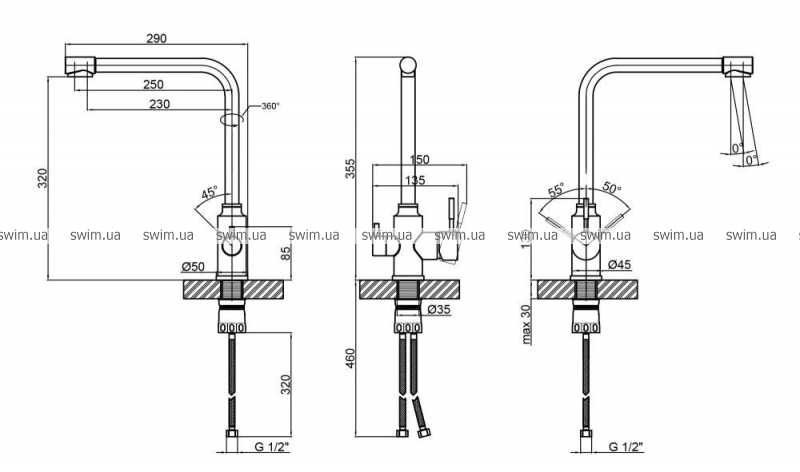 - Дополнительные характеристики Длина гибкой подводки - 460 мм.