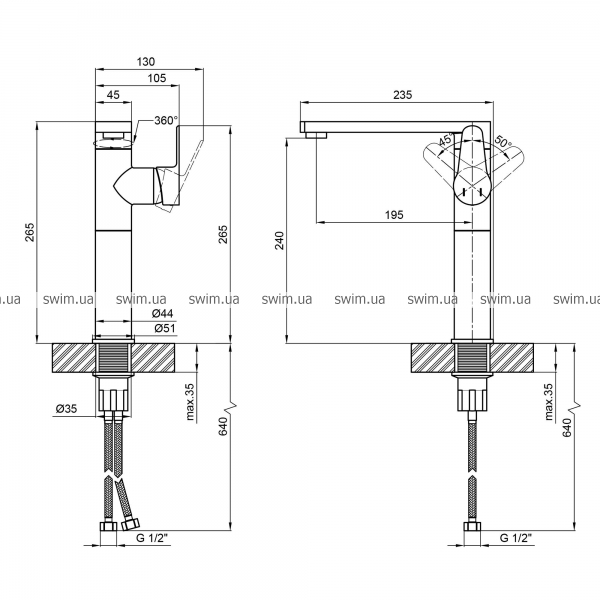 - Высота излива, мм: 240