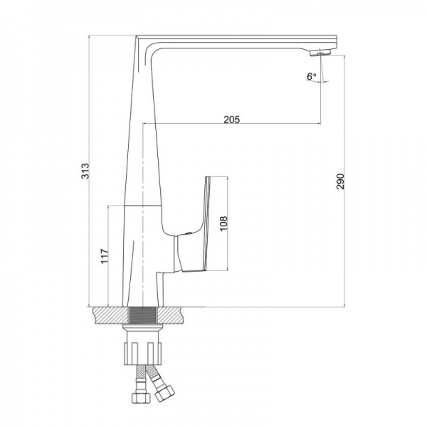 - Комплектация: смеситель, гибкая подводка, крепежи