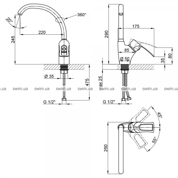 - Комплектация: смеситель, гибкая подводка, крепежи