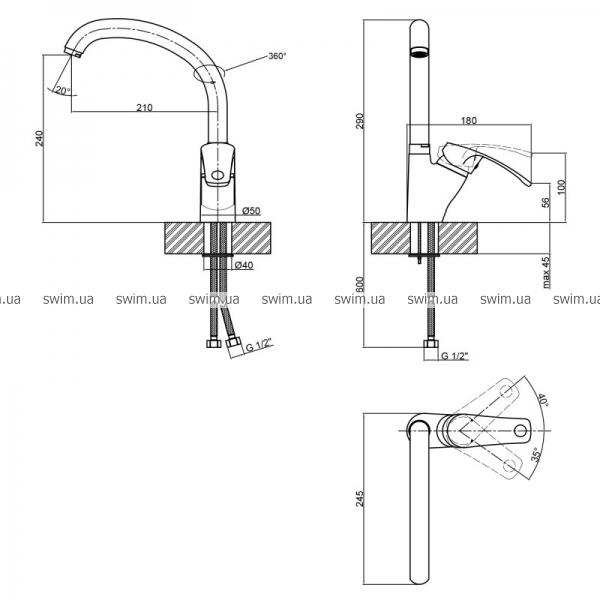 - Высота излива, мм: 240