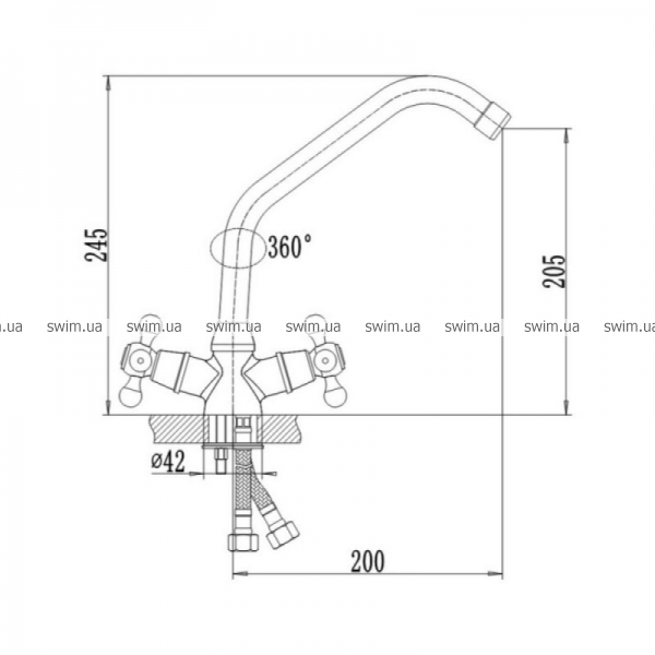 - Комплектация: смеситель, гибкая подводка, крепежи