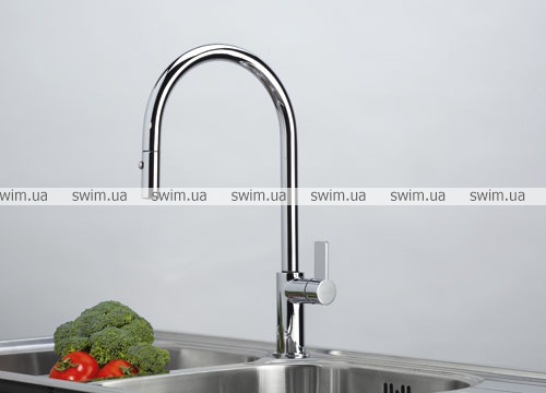 Akros – экстравагантность прибора в дополнение к компактному размеру служит отличным вариантом использования в тандеме с глубокой раковиной под столешницу. Здесь есть выдвижной шланг и угол оборота 360°.