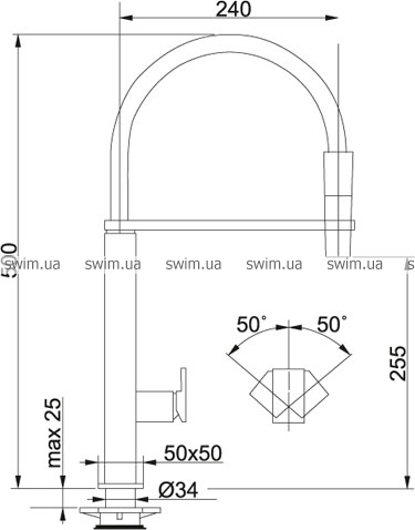 Akros – экстравагантность прибора в дополнение к компактному размеру служит отличным вариантом использования в тандеме с глубокой раковиной под столешницу. Здесь есть выдвижной шланг и угол оборота 360°.