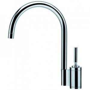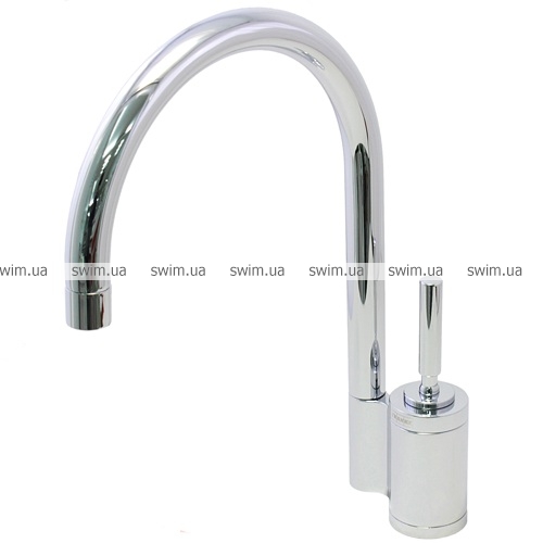 Format – корпус цилиндрического характера может гармонировать с парой – рычагом управления и изливом. Угол поворота и немалая высота самого смесителя.