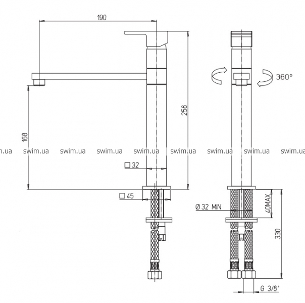 Format – корпус цилиндрического характера может гармонировать с парой – рычагом управления и изливом. Угол поворота и немалая высота самого смесителя.