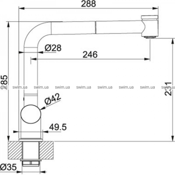 - Длина излива: 246 мм
