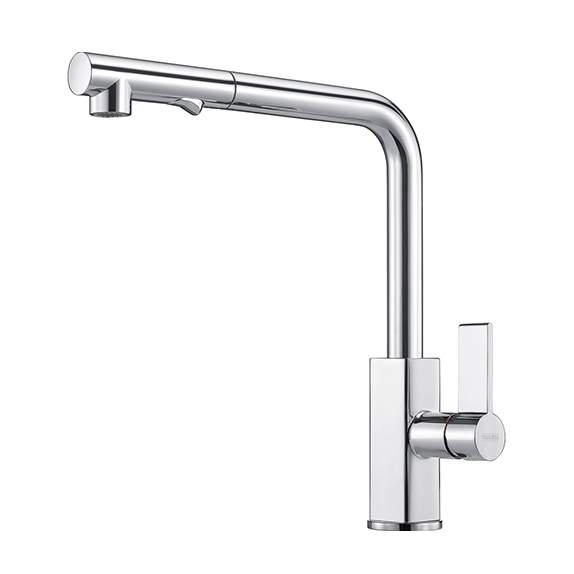 Akros – экстравагантность прибора в дополнение к компактному размеру служит отличным вариантом использования в тандеме с глубокой раковиной под столешницу. Здесь есть выдвижной шланг и угол оборота 360°.