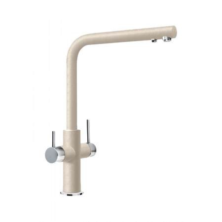 Смеситель Neptune Clear Water предназначен для присоединения к водопроводной и фильтрованной воде. Один рычаг включает холодную и горячую воду, другой - фильтрованную.