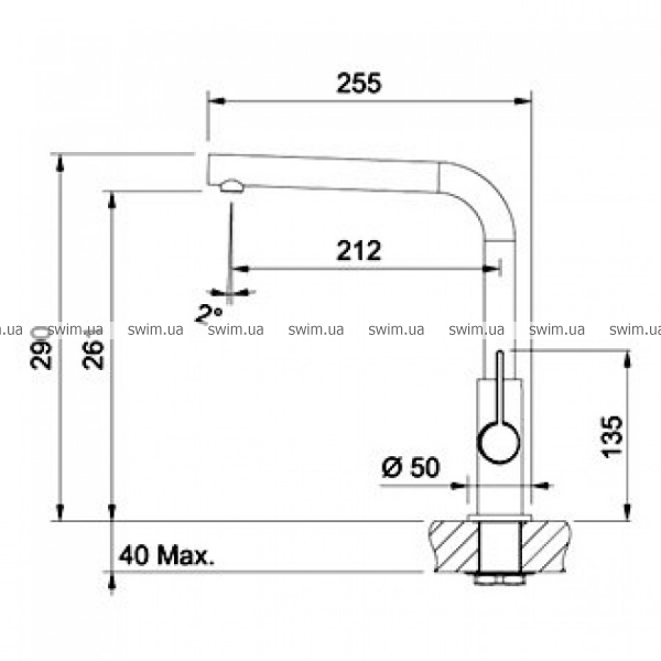 - Длина излива: 212 мм
