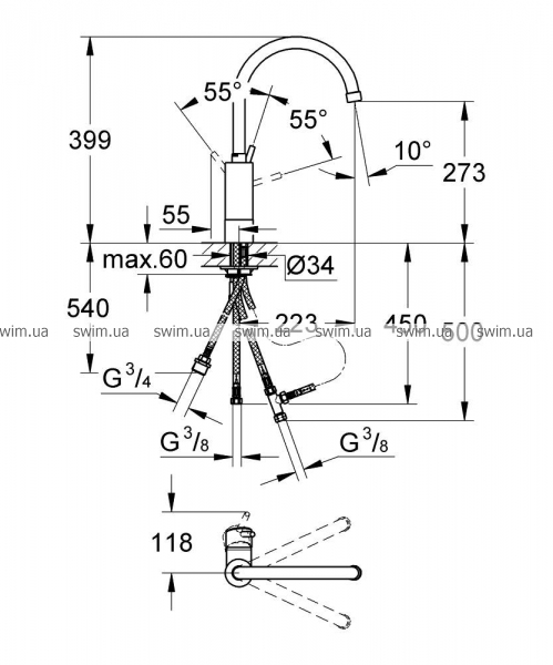 - поворотный трубкообразный излив