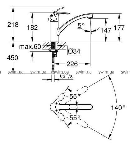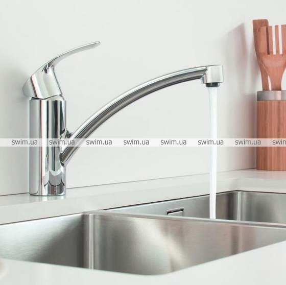 Этот недорогой кухонный смеситель серии Eurosmart New станет весьма практичным дополнением к Вашей мойке: он оснащен изливом, вращающимся в диапазоне 140°, который обеспечит Вам необходимую свободу действий при работе на кухне и одновременно с этим не будет ударяться об окружающие стены и шкафы.
