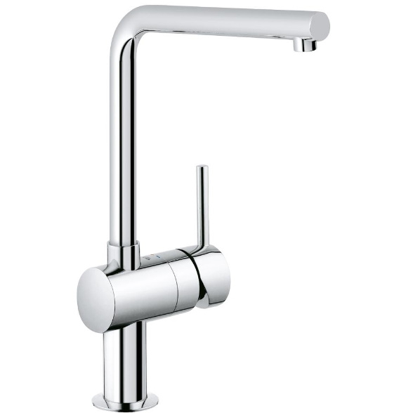 Этот кухонный смеситель GROHE Minta начинает линейку коллекции Minta. Отличительными особенностями данной модели являются поворотный, высокий L-образный излив и керамический картридж диаметром 46 мм.
