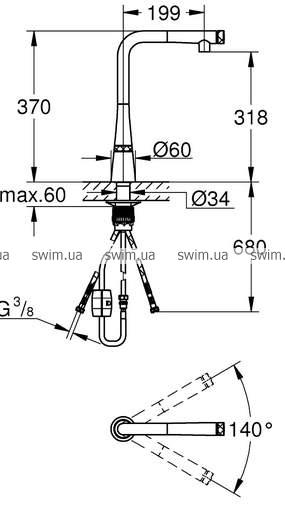 - Кнопка SmartControl для включения-выключения, поворот для регулировки напора