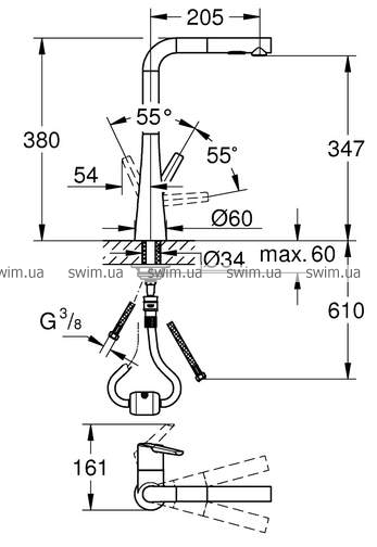 • GROHE Magnetic Docking гарантирует легкое вытяжение и возврат головки аэратора в исходное положение