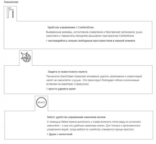 EcoSmart. Продукция Hansgrohe, оснащенная технологией EcoSmart, требуют на 60% меньше воды, чем обычные продукты, без потери комфорта. Это означает, что вы можете сократить свои затраты на воду и энергию и сохранить ценные ресурсы.
