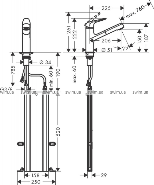 - sBox для бесшумного, плавного и защищенного нахождения шланга в шкафу, под рабочей поверхностью, с удлинением до 76 см