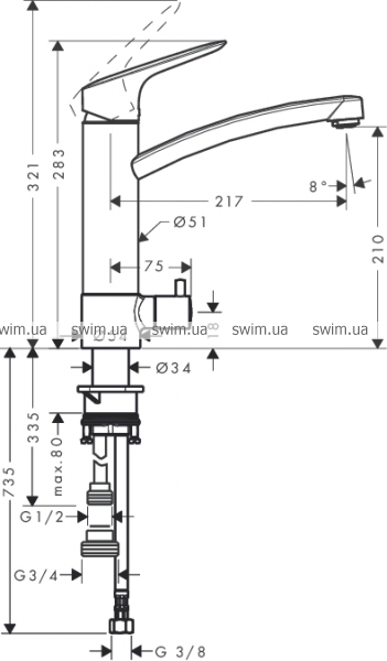- тип соединения: G ⅜
