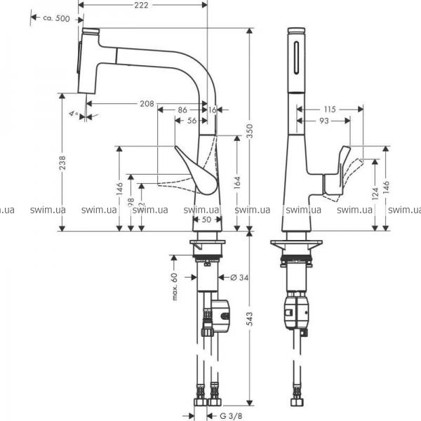 → Смеситель для мойки Hansgrohe Metris Select M71 73822800 с выдвижным душем