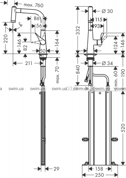 - sBox для бесшумного, плавного и защищенного передвижения шланга в шкафу, под рабочей поверхностью, с удлинением до 76 см