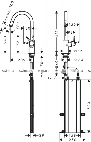 - sBox для бесшумного, плавного и защищенного передвижения шланга в шкафу, под рабочей поверхностью, с удлинением до 76 см