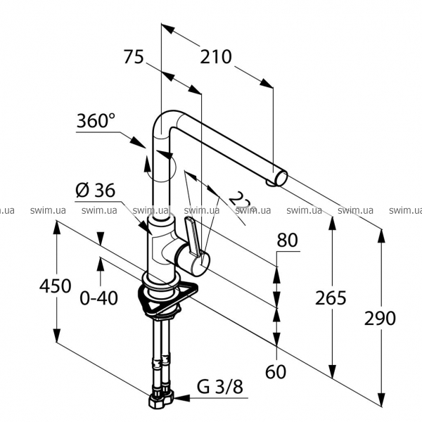 - поворотный излив (360°)