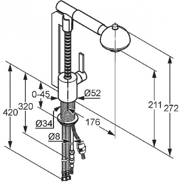 - С автоматическим переключением: нормальная струя/ душевая струя гибкая подводка