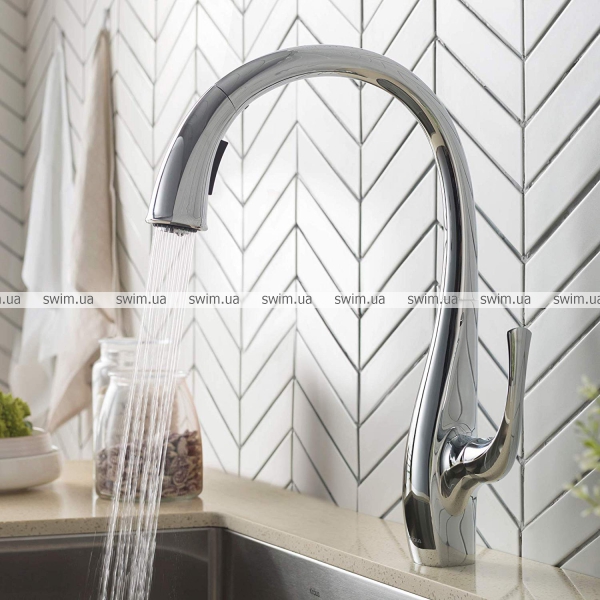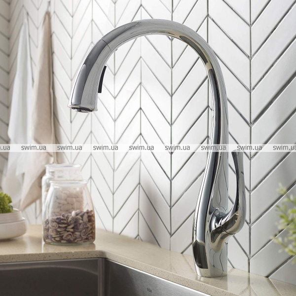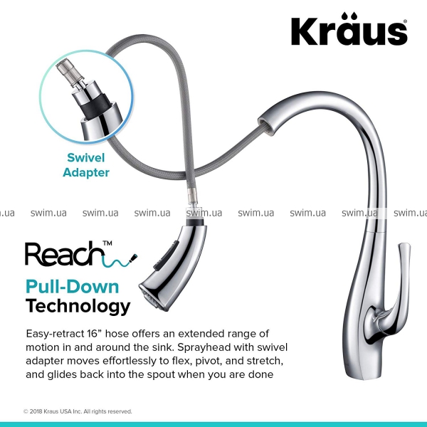 - Система выдвижного распылителя воды с технологией Reach: легко перемещать, чтобы сгибать, поворачивать и растягивать, после использования головка легко скользит обратно в носик.