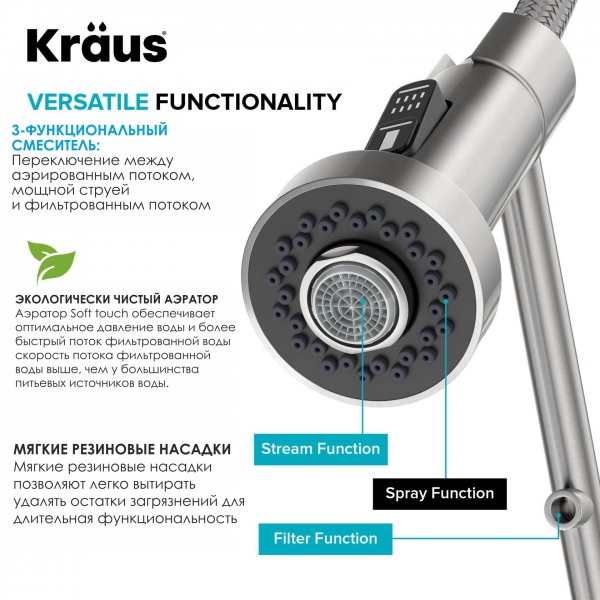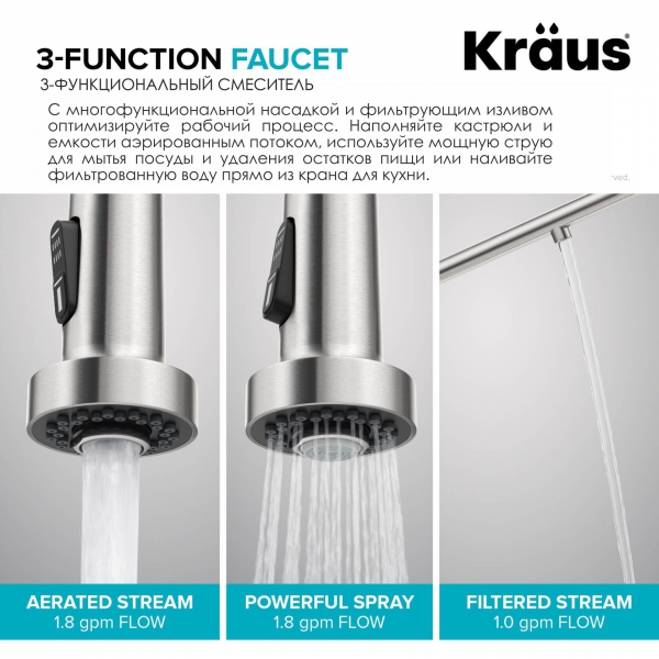 Смеситель для мойки Kraus Bolden KFF-1610MB с фильтром для воды