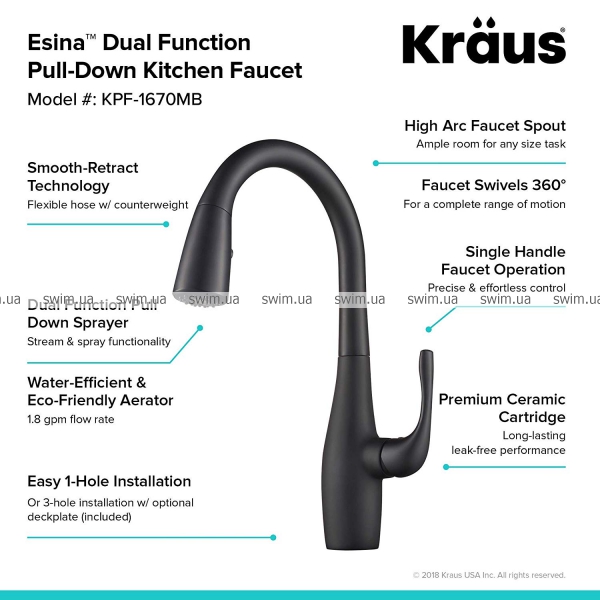 - Безотказный механизм втягивания распылительной головки - надежно защелкивается без провисания. Противовес обеспечивает плавный отвод и стабильное удержание