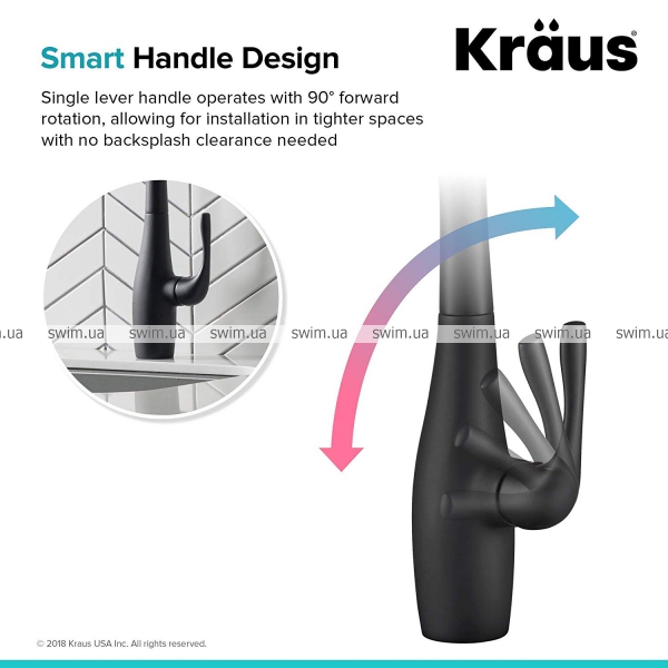 - Радиус вращения смесителя 360º обеспечивает полный доступ к кухонной раковине