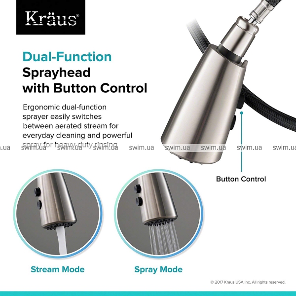 - Безотказный механизм втягивания распылительной головки - надежно защелкивается без провисания. Противовес обеспечивает плавный отвод и стабильное удержание