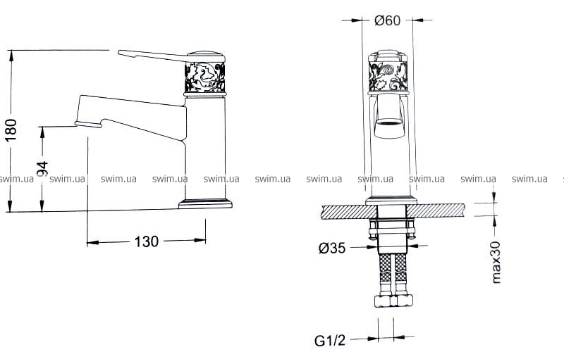 Отделка в цвете хром обладает высокой устойчивостью к коррозии и ржавчине. Контроль воды и температуры осуществляется одним рычагом. Керамический картридж высокого качества. Шланги для горячей/ холодной воды в комплекте.