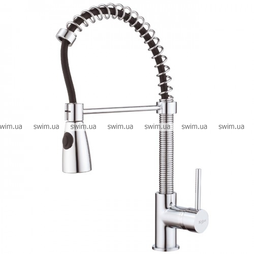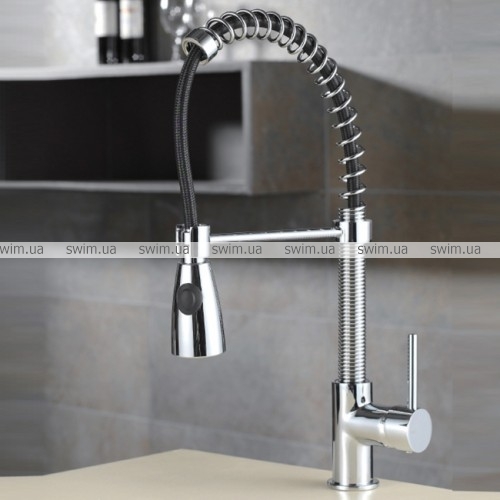 - Пружинный кран обладает гибким выдвижным элементом с распылительной головкой