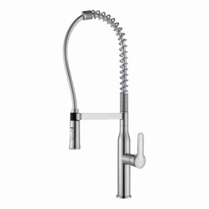 NOLA KPF-1650 - кухонный смеситель с одним рычагом для управления напором и температурой воды. Подача воды осуществляется в двух режимах: прямая струя и распыление. Мягкие резиновые насадки в распылительной головки предотвращают тяжелую воду и известковый нарост, что делает обслуживание легким.